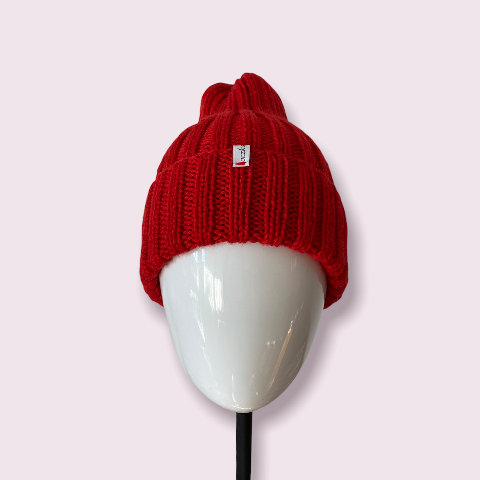 Czapka wykonana na drutach z włóczki: 40% wełna merino, 40% akryl, 20% kaszmir. Skład włóczki i elastyczny wzór nadaje czapce pożądane cechy: jest ciepła (wełna), miękka (akryl), ma gładki wyrazisty splot (kaszmir) i dobrze przylega do głowy, rozmiar ma szeroki zakres 52 cm -58 cm obwód głowy, a wysokością wywinięcia bardzo łatwo można regulować wysokość czapki. Wysokość czapki bez zakładania i bez rozciągania wynosi 34 cm. Kolor czerwony. Rozmiar uniwersalny.